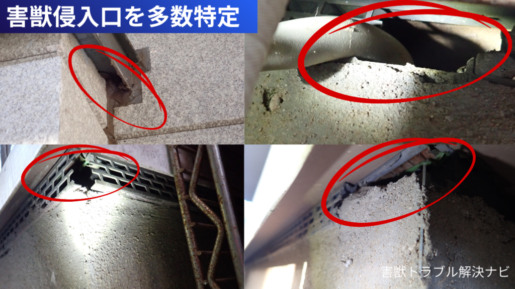 また、屋根に登り侵入口を特定したり、床下に入り泥だらけになりながら侵入口を特定する作業はとてもハードなものです。