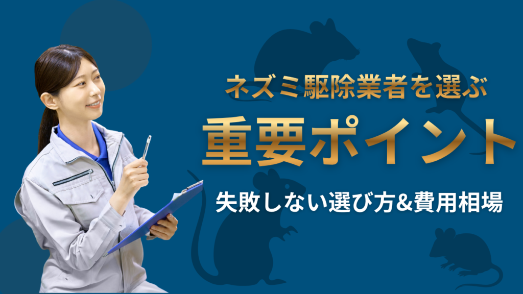 ネズミは駆除だけでは再発することがあります。侵入経路の封鎖や環境改善まで提案してくれるか確認しましょう。一般的に対策工事の補償は1年〜3年が多いです。