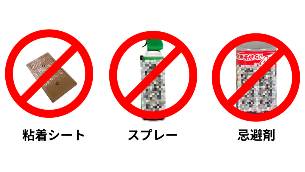 粘着シートや忌避剤を使う方法もありますが、設置場所が適切でないと効果が出にくいことがあります。仮に追い出せたとしても侵入口を全て特定し塞がない限り、1週間ほどで再びネズミが侵入します。また自分で行うことで万が一感染症にでも感染してしまったら大変なことになります。